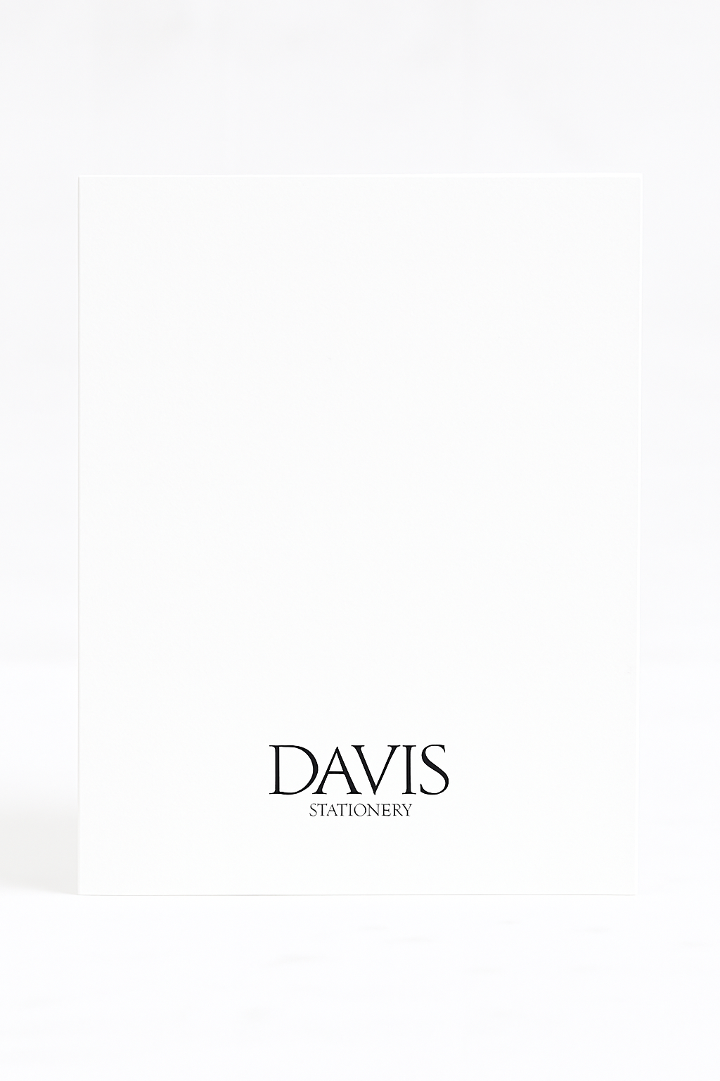 Includes a glossy finish sticker with the Davis Stationery logo to seal the card.