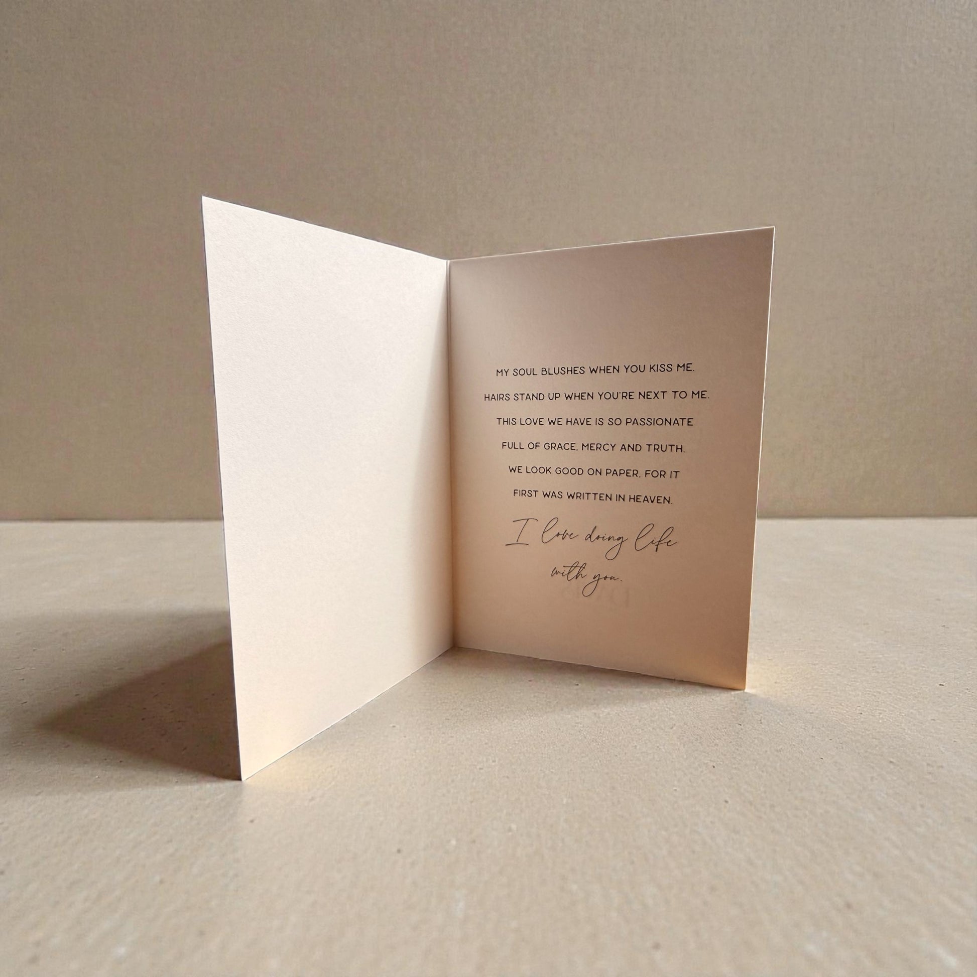 Introducing the “Written in Heaven” card—where poetic truth meets elegant design.